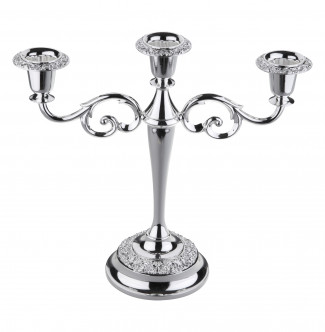 Silver Plated 3 Light Candelabra with "Baroque Style" Arm and "Rose Design" on Sconces and Base