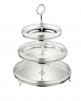 Silver Plated Cake Stand, comprising of 3 Galleried Patterned Plates, Diecast Stems-Handle and Legs on bottom plate.