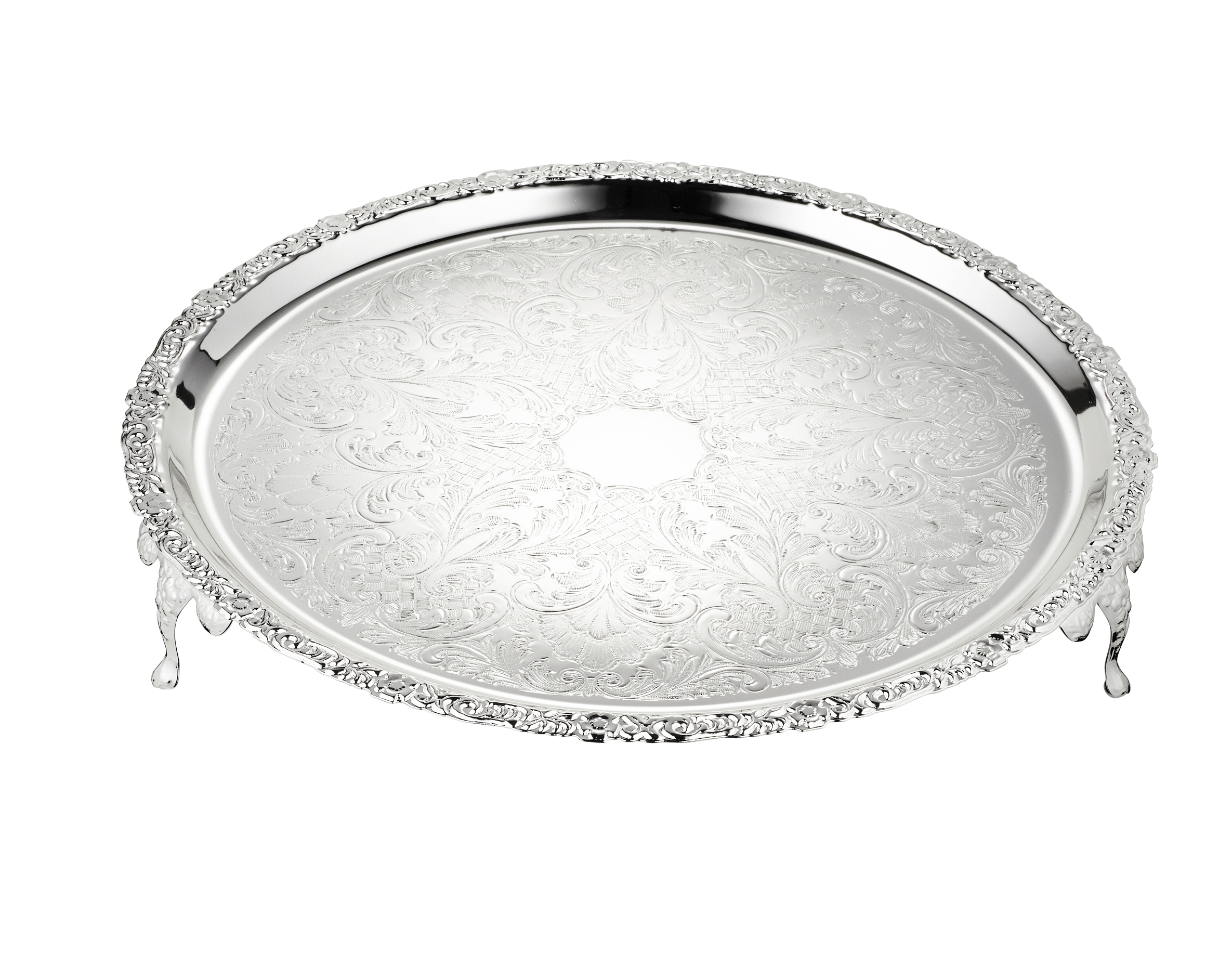 Silver Plated Large Round Cake Tray/Floral Edge with Legs