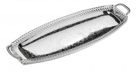 Silver Plated Galleried Sandwich Tray with Handles and Ball Feet.