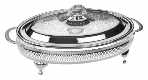 Silver Plated Gallery Frame with Handles and Legs. Large Oval "Oven to Tableware" Glass Casserole, complete with Silver Plated Decorative Lid with Diecast Handle.