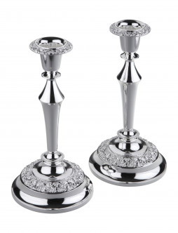 Silver Plated Pair of Tall Candlesticks, with "Rose Design" on Sconce and Base.