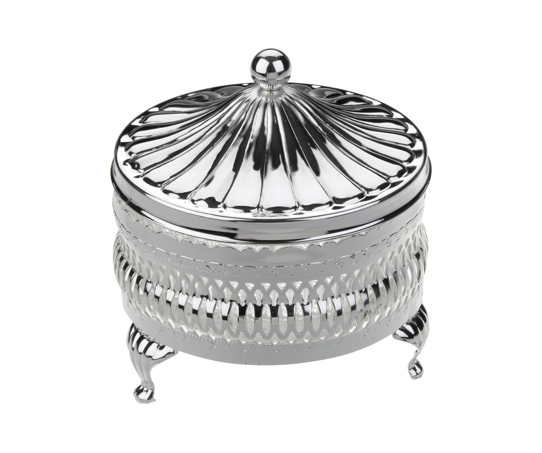 Silver Plated Gallery Frame with Legs and Decorative Lid, with an Round Patterned Glass Dish