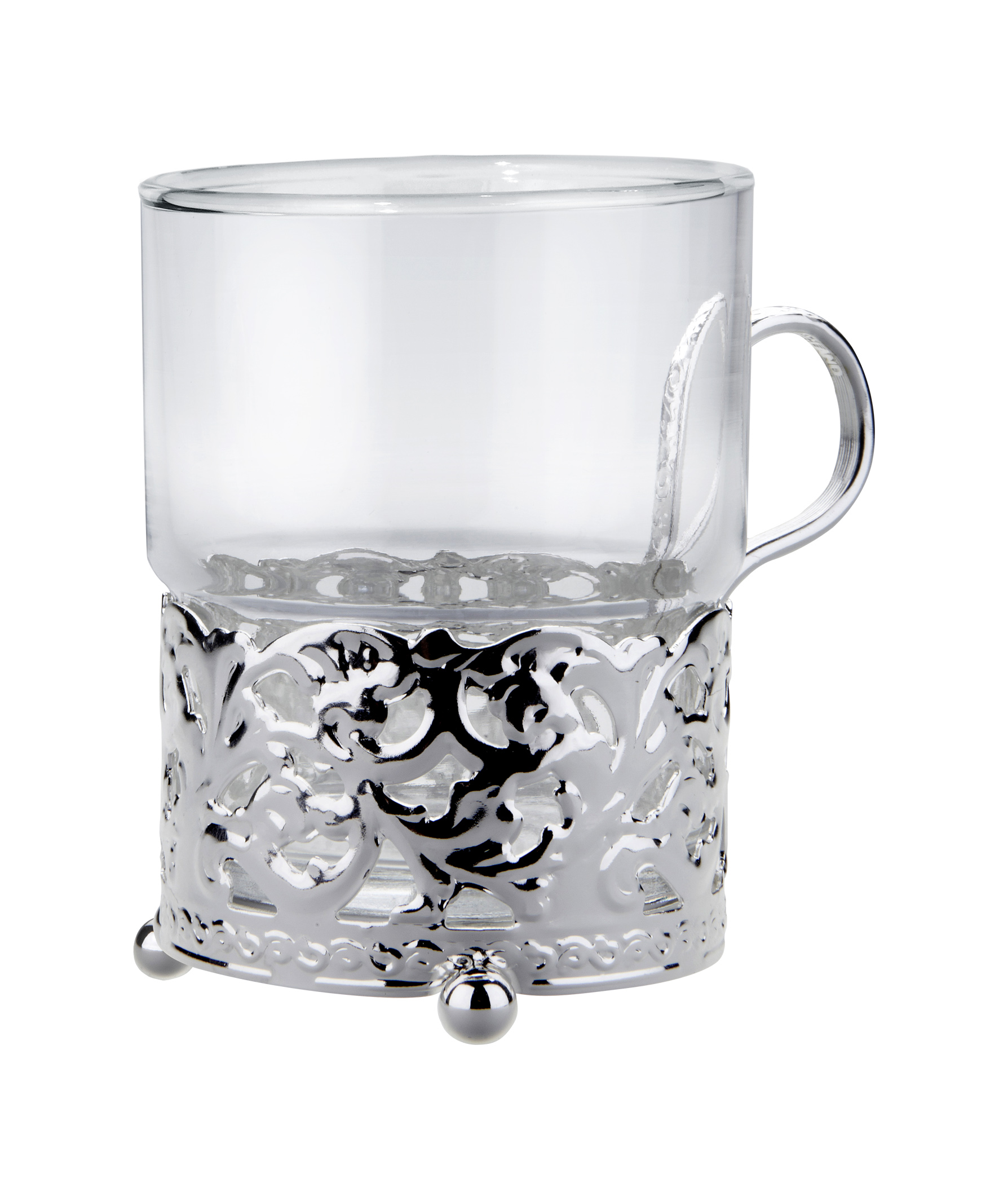 Silver Plated "Royal Gallery" Holder with Handle and Ball Feet, complete with Heat Resistant Tea Glass.