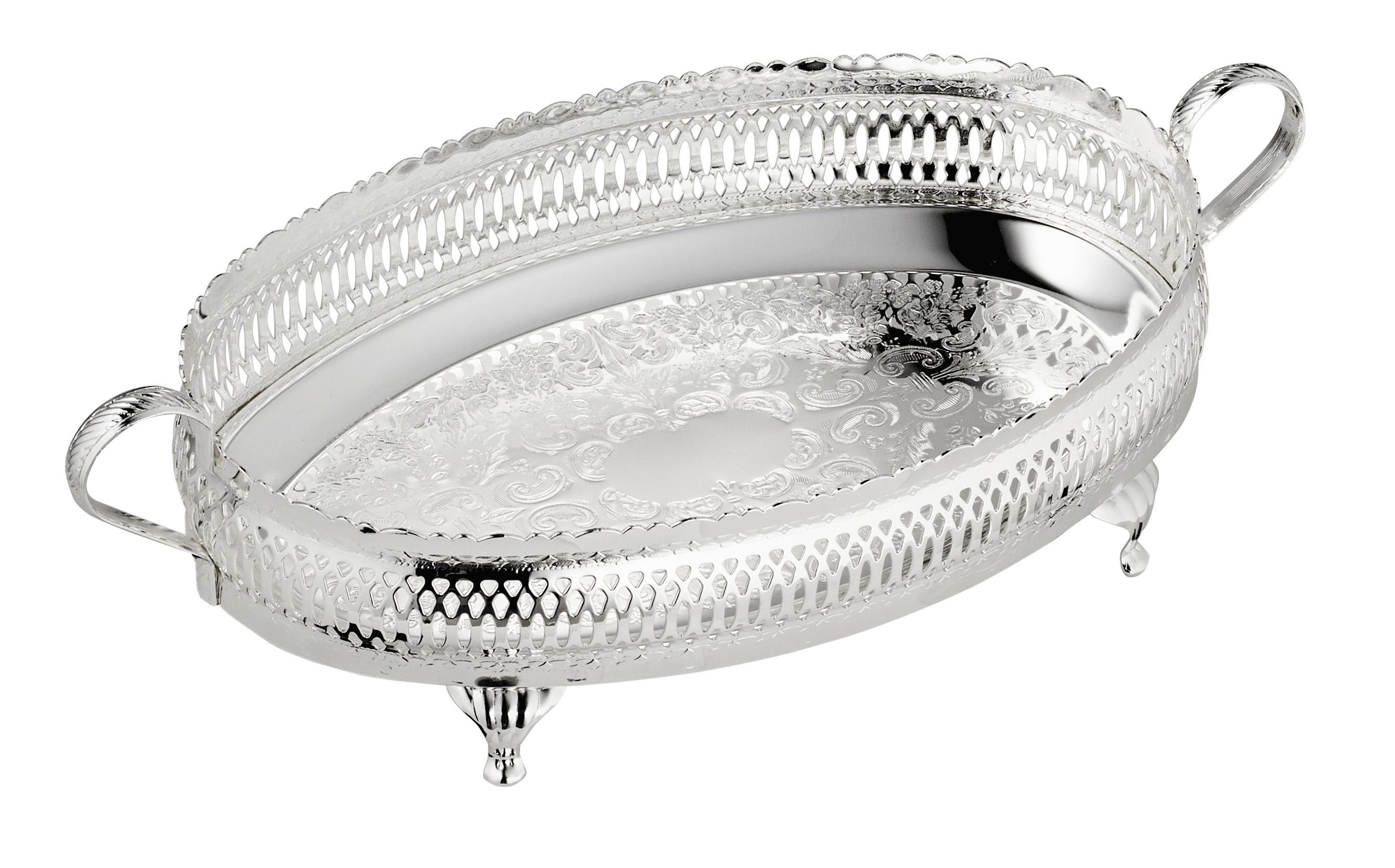 Silver Plated Small Oval Gallery Tray with Legs and Side Handles