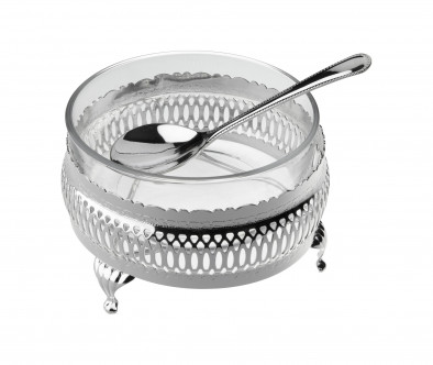 Silver Plated Gallery Frame with Legs, including Glass Dish and Silver Plated Spoon.